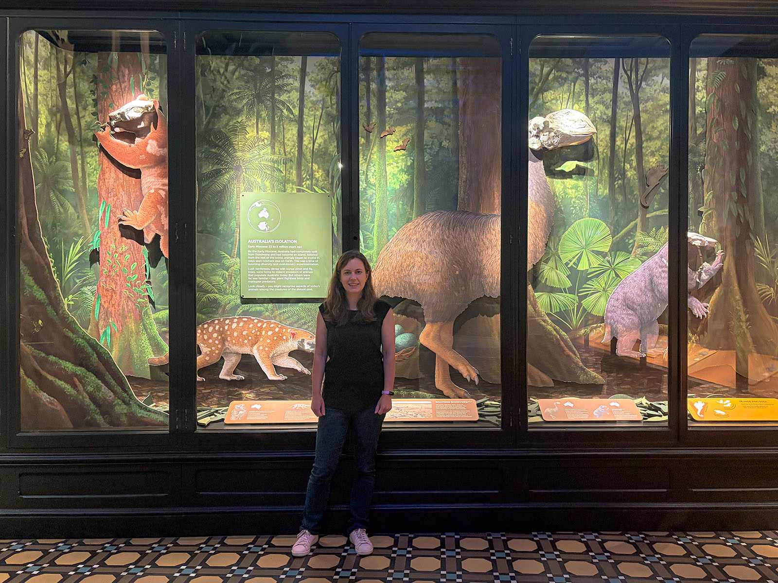 This was a large-scale project, with some of the illustrations measuring up to 6.8 metres wide and 2.4 metres tall. Even the life-sized animals were big - Megalania (the large, Komodo dragon-like lizard you will see below) measures 5.5 metres long!