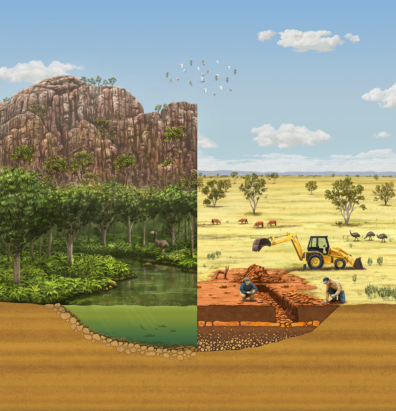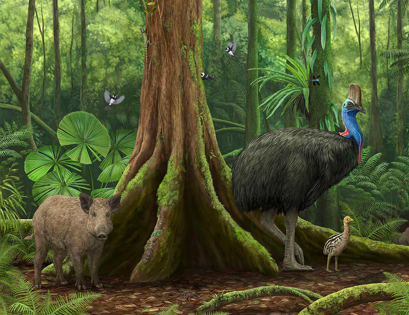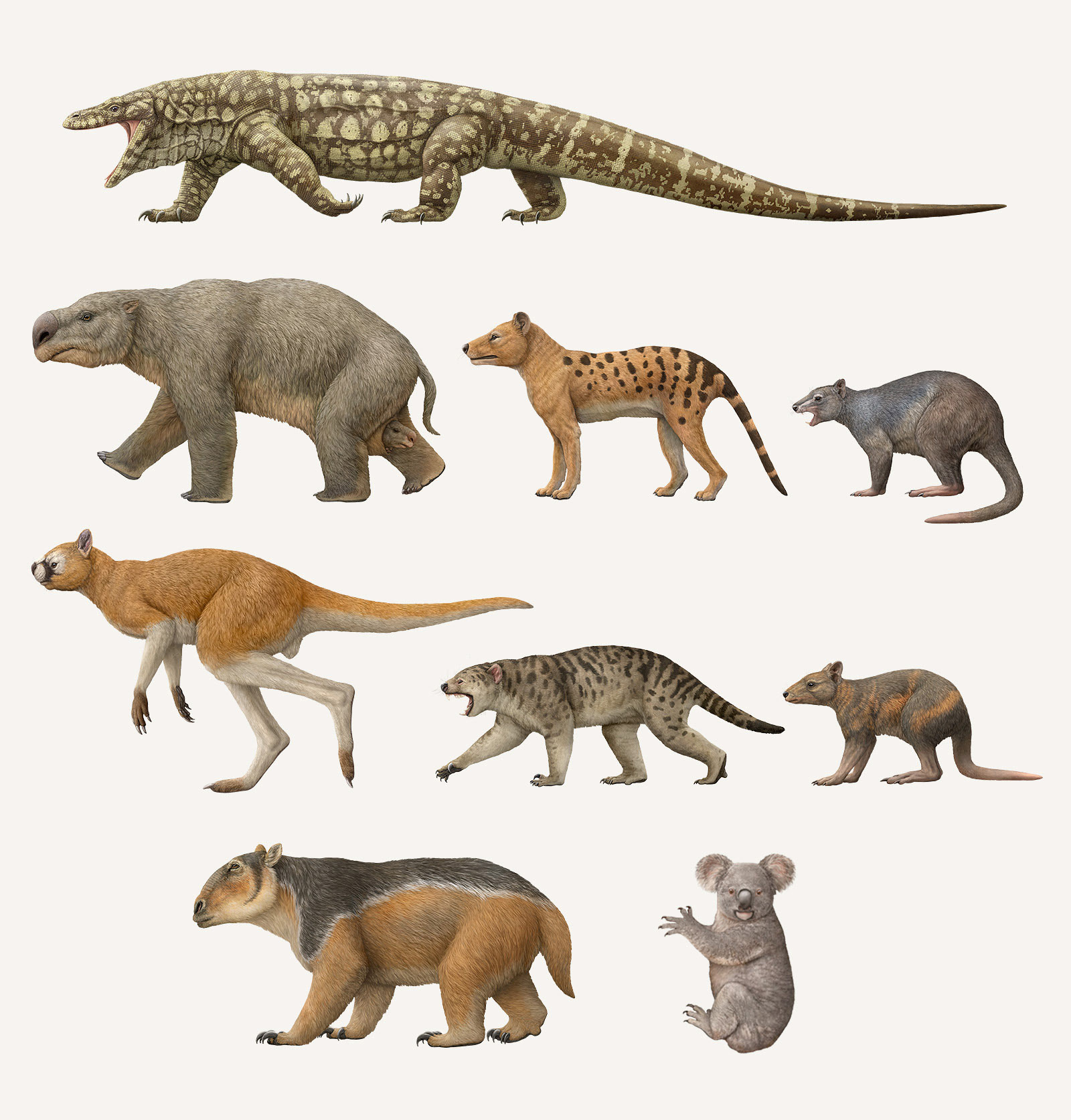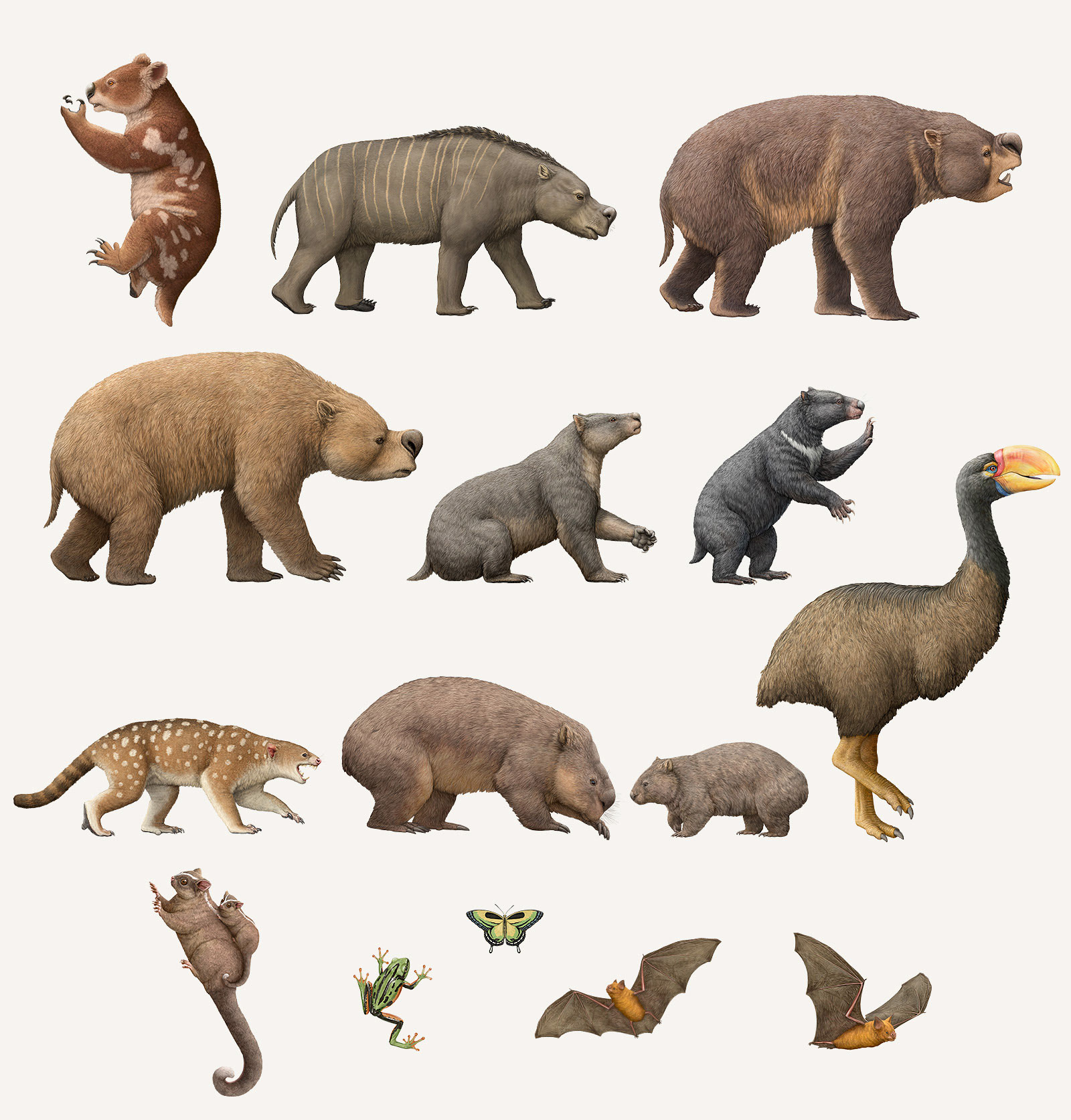 Working with the Australian Museum was an ideal project for me. I’m always excited to collaborate on projects that combine natural history, wildlife, conservation themes, and science. Throughout this project, I had a strong sense that I was contributing something meaningful to our collective understanding of Australia’s prehistoric fauna. There are relatively few visual depictions of these animals and as palaeontologists continue to make new discoveries, our understanding of how they may have looked evolves - meaning many existing depictions are no longer based on the most recent information. I created these illustrations under the guidance of palaebiologist Douglass Rovinsky so I could depict the animals based on the latest research (or be a little more speculative where there was less known about the subject).